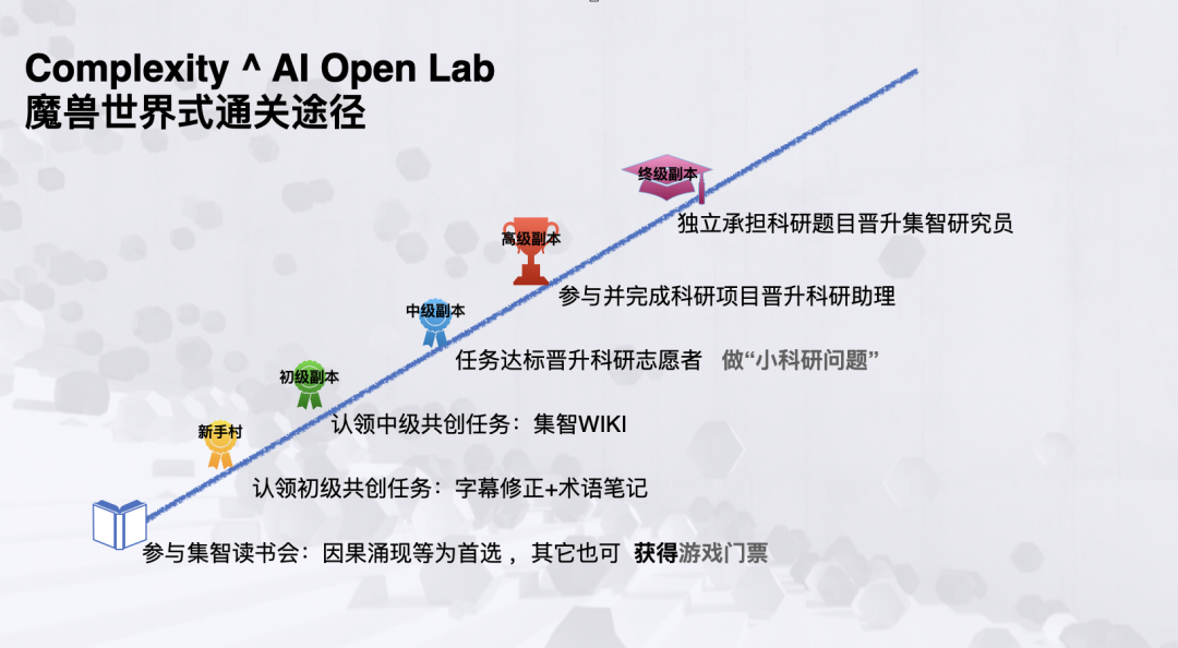 集智俱乐部“Complexity ^AI”实验室,为你量身打造了“游戏化科研”的通关之路。 这里不看学历,只看实力!这里有顶尖的导师、前沿的课题、志同道合的伙伴和一套让你乐在其中的成长体系。