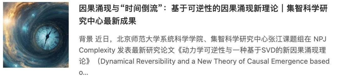 因果涌现入门路径:https://pattern.swarma.org/article/296