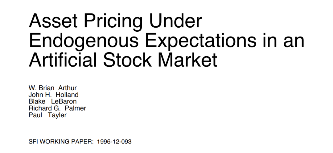 金融复杂性是复杂科学在金融系统中的落地和深化。20世纪90年代,圣塔菲研究所以“复杂适应系统”为核心框架,采用大量异质主体交互的动态网络进行经济研究。W. Brian Arthur 等人在人工股票市场实验中发现,资产价格波动可以由交易者间的自适应学习与反馈循环进行有效模拟,实现了首次将金融市场纳入复杂性科学的视域。