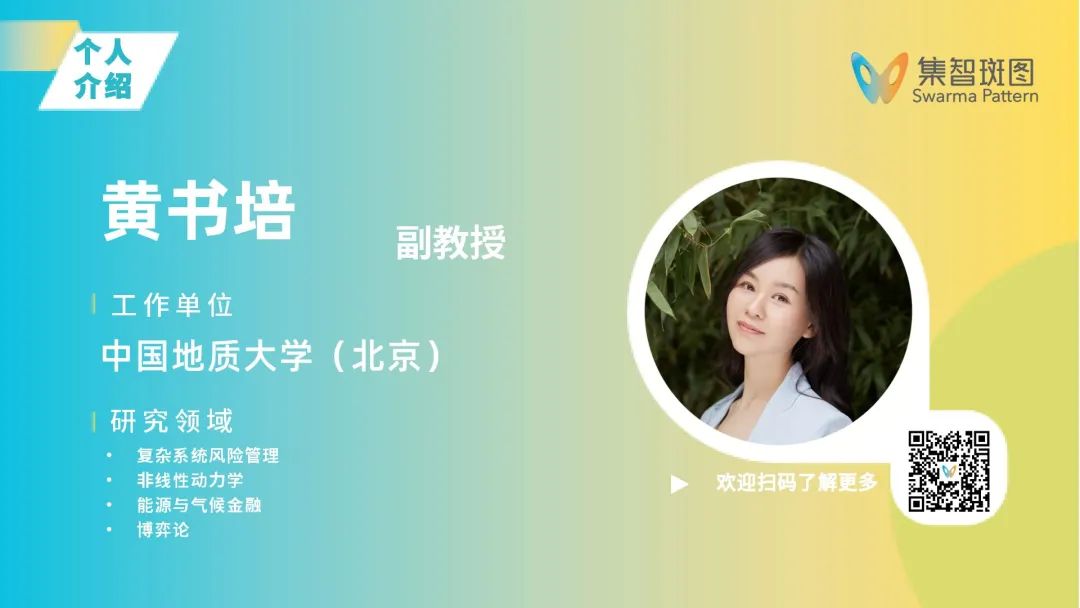 黄书培,中国地质大学(北京)副教授、博士生导师,研究兴趣:复杂系统风险管理、非线性动力学、能源与气候金融、博弈论。自2020年起担任4个国际期刊副主编和多个客座编辑,任SSCI期刊International Review of Financial Analysis副主编、SSCI期刊International Review of Economics & Finance副主编、Scopus期刊Journal of Climate Finance副主编、ESCI期刊Frontiers in Sustainable Cities副主编;在SSCI/SCI/ESCI期刊Entropy、Frontiers in Physics、Sustainable Futures、International Review of Financial Analysis等组织特刊,担任客座编辑。主持国家自然科学基金青年项目、教育部人文社科基金项目等10余项,作为项目主干参加国家自然科学基金重大项目、科技部重点研发计划、北京市社科重点决策项目、北京市自然科学基金青年/面上项目、北京市高等教育学会课题、教育部供需对接就业育人项目等30余项。在Economics Letters、Journal of International Money and Finance、International Review of Financial Analysis、Energy Economics、International Review of Economics & Finance、Finance Research Letters、Applied Energy、Energy Policy、Renewable & Sustainable Energy Reviews、Energy、中国管理科学、资源科学等国内外期刊发表论文50余篇。多项研究成果获得党和国家最高领导人、省部级领导批示,国家部委感谢信;在中央广播电台担任政策解读嘉宾,服务社会。