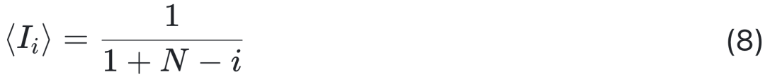 在一个简单的一维链结构(one-dimensional structure)中,除叶节点外,每个节点i恰有一个子节点l = i + 1。当需求足够大时,最小值中的Di项可以忽略(见前文公式4、7),因此节点i的平均产量 〈li〉约等于N – i个独立同分布的 [0,1] 区间均匀变量的最小值的期望值。该值在统计学中是已知的,其表达式为: