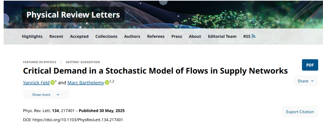 正如《Physics》杂志《FOCUS》栏目文章 “How to Make Supply Chains More Resilient”(作者 Mark Buchanan)所指出: