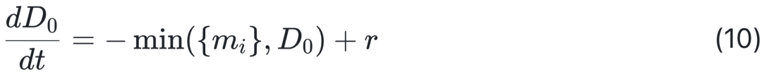 需要注意的是:这个公式对所有树状网络都成立,只要每个节点最多只有一个父节点[20]。有趣的是,在一维链结构的淬火情形(quenched case)下,所有mi固定不变,根节点需求的演化由如下随机微分方程控制: