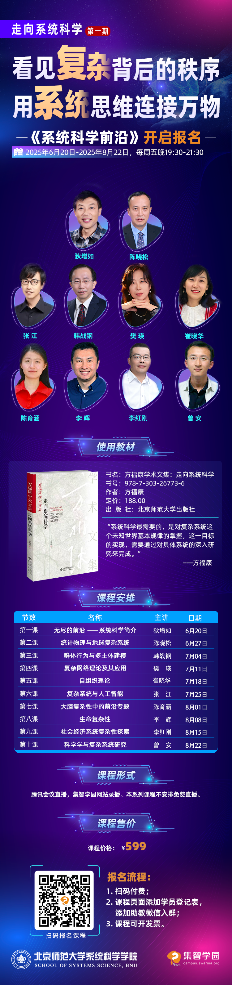 AI遇上复杂系统:从建模工具到认知范式的跃迁——系统科学核心课程,洞见智能时代的动力学与涌现逻辑: