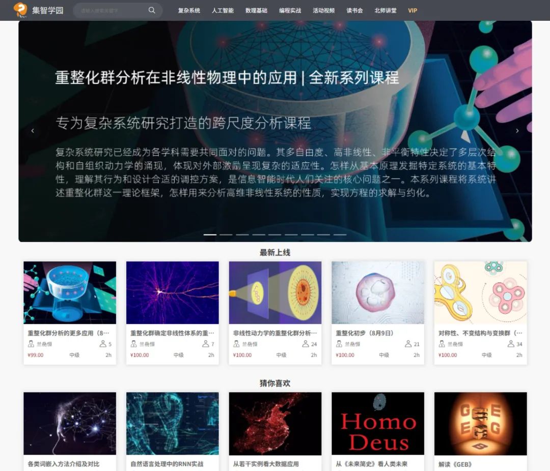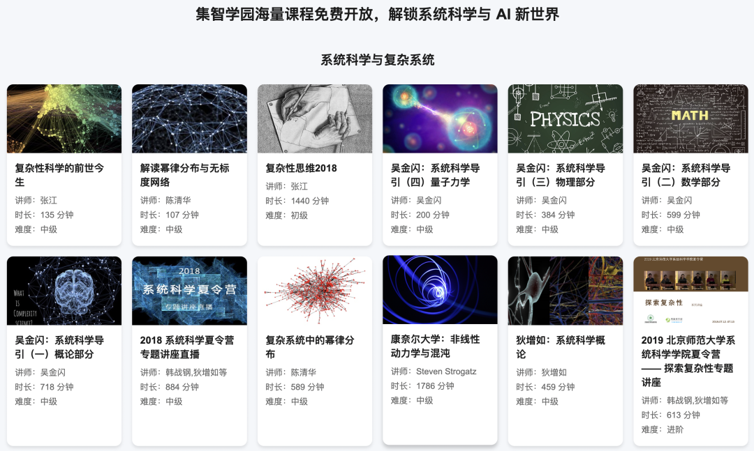 集智学园免费开放复杂科学相关课程,为入门/进阶/实践者提供学习路径
