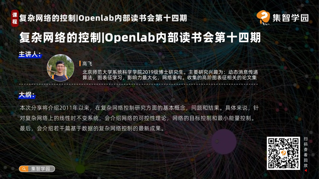 (新增开放)复杂网络的控制|Openlab内部读书会第十四期 复杂网络控制研究基本概念和最新学术成果。