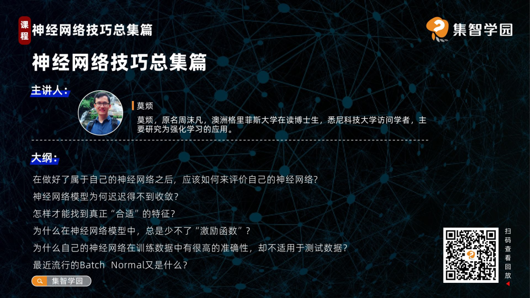 (新增开放)神经网络技巧总集篇(组课) 面向已入门者的模型调优课程,提升机器学习效率与效果。