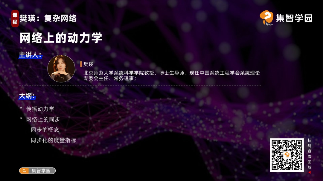 截至目前,我们推出了多个专题课程,包括系统科学前沿、重整化群分析在非线性物理中的应用、复杂系统的涌现动力学、Koopman分析在非线性动力学中的应用、混沌科学、复杂系统入门、网络科学系列课程、范畴论系列课程、复杂系统的计算实验、量子力学、量子信息基础、信息论基础、量子信息与量子计算、NetLogo等,以及经授权从圣塔菲网站引入的系列课程。