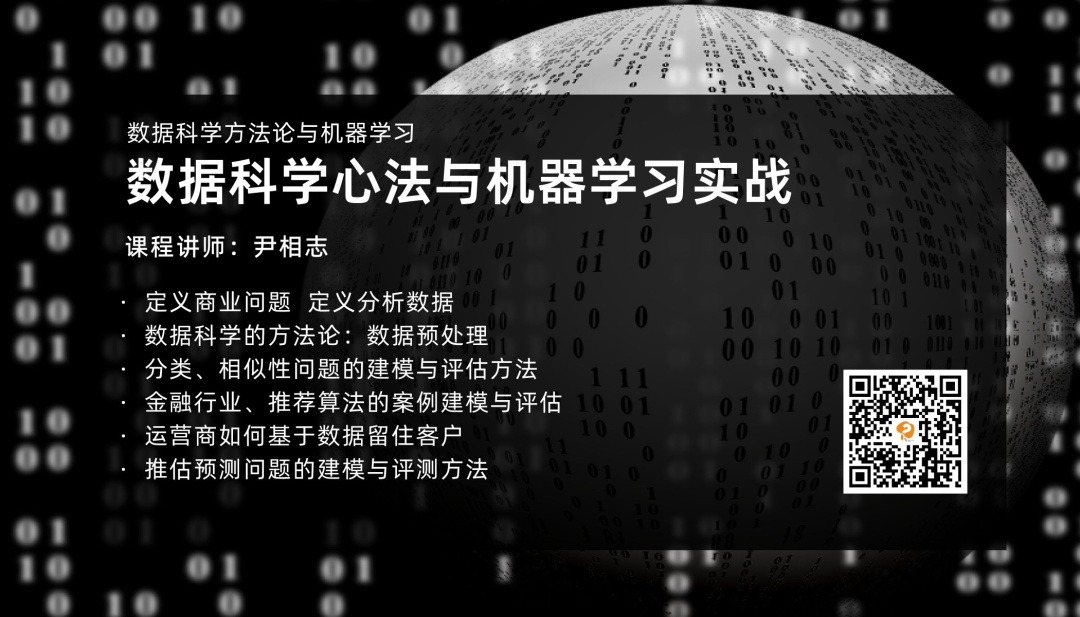 (新增开放)数据科学心法与机器学习实战(组课) 尹相志老师亲授,凝练16年工作经验,解决现实问题的ML实战课。
