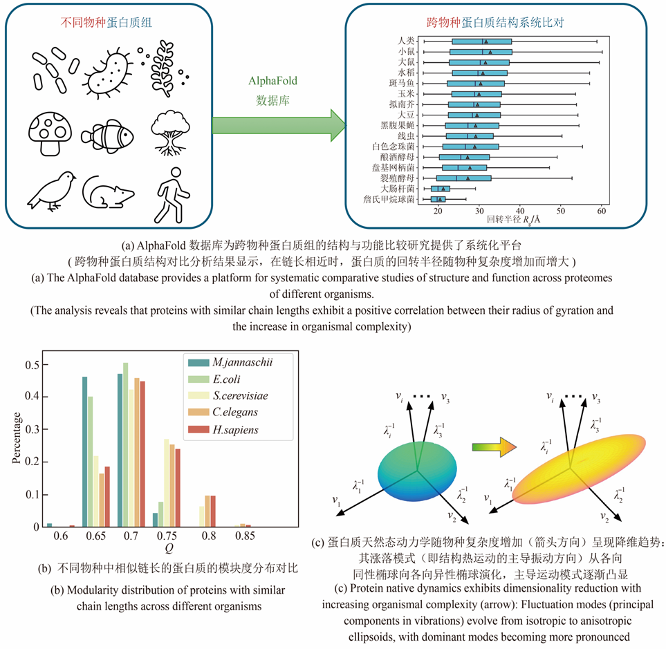 图4 基于AlphaFold数据库研究不同复杂度物种体内蛋白质结构与动力学的统计规律