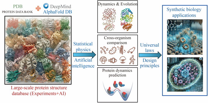 统计物理方法为解决上述问题提供了新的方案,其在蛋白质科学研究中早已发挥重要作用,而AI的发展进一步加速了这一领域的进步。通过将统计物理学原理与蛋白质结构大数据(其中也包含由AI预测得到的海量蛋白质结构)的分析相结合,研究者能够超越单一蛋白质的个案研究,从整体上把握蛋白质设计的普遍原则。本文将系统阐述相关方法在解析蛋白质科学基本问题方面的潜力。这种基于数据和统计物理的研究方法正在为合成生物学领域的蛋白质设计开创新的范式,推动该领域向更精准、更可控的方向发展。