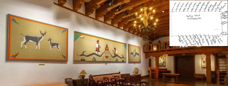 图1:召开1984年圣塔菲研讨会的会议室现状和与会学者的座位布局(右上)