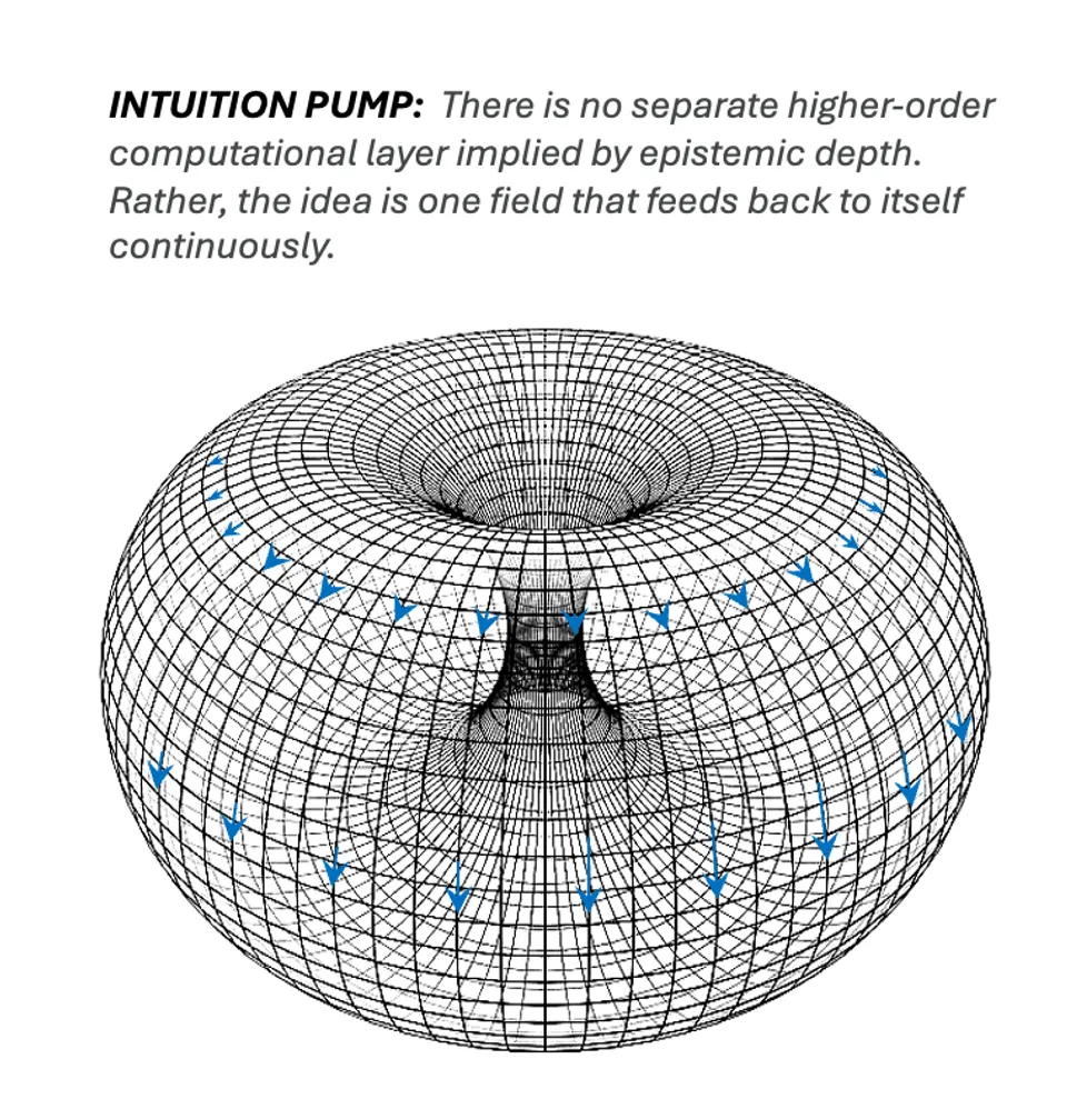 图5:此图说明“认识深度”是一个递归系统的信息反馈结果,它与系统整体的推理一致性相关联。
