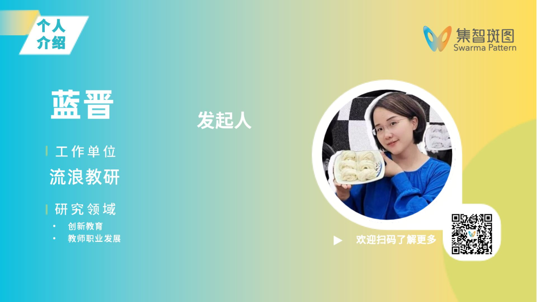 蓝晋,跨界工作者,流浪教研发起人。一个被好奇心驱动的跨界探索者。 从设计到教育,职业轨迹始终在突破边界。8年设计师经历,参与过一系列公园设计;gap探索期间,意外成为第一代生活美学网红,优酷视频首页点击量破百万,“一条”视频号的常驻嘉宾;作为创新学校的创校员工进入教育领域,深耕8年课程研发与管理,让“创新学校”的理念真正落地。发起流浪教研,和全国老师一起,探索教师的职业发展之路。