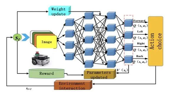 输出动作:离散动作空间(如前进、左转、右转),适用于导航和避障任务。
