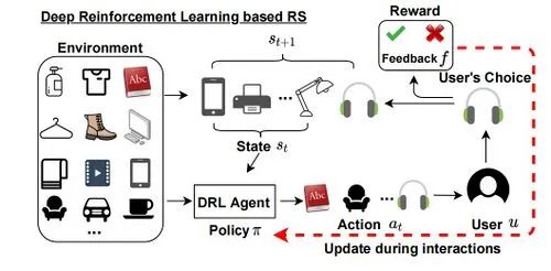 文章[13]提供了强化学习在推荐系统中的应用,具体思路流程见右图所示。