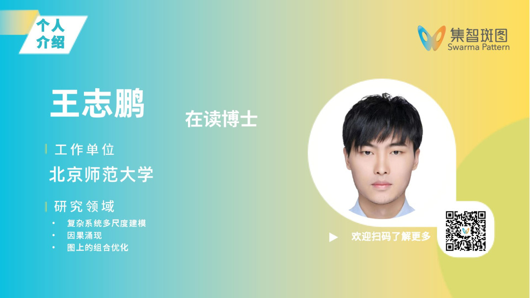 王志鹏,北京师范大学在读博士,师从张江教授,研究兴趣包括复杂系统多尺度建模、因果涌现等。