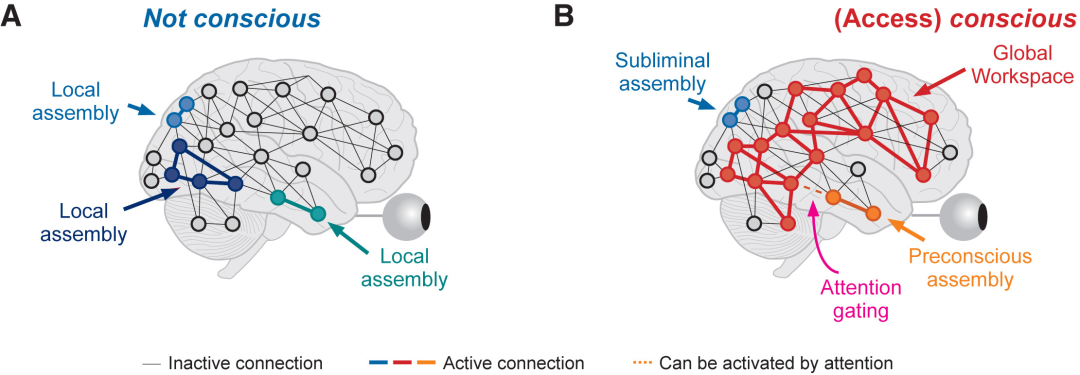 Mashour, George A., et al. “Conscious processing and the global neuronal workspace hypothesis.” Neuron 105.5 (2020): 776-798.