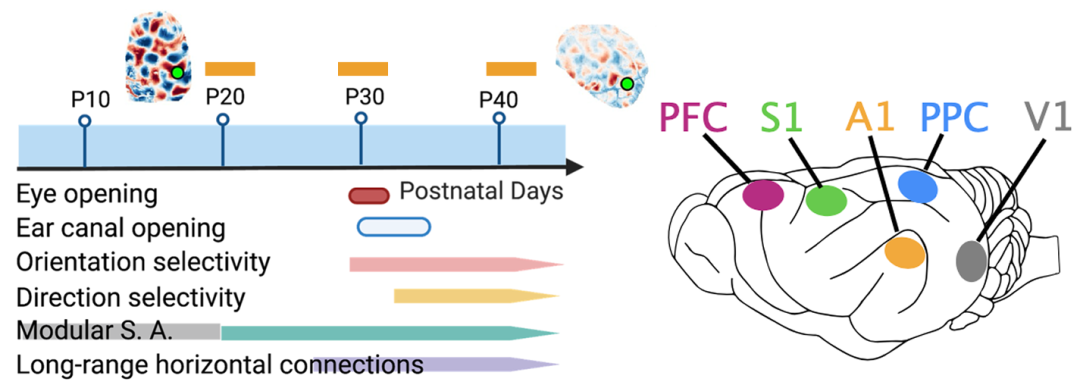 N.J. Powell, B. Hein, D. Kong, J. Elpelt, H.N. Mulholland, M. Kaschube, & G.B. Smith, Common modular architecture across diverse cortical areas in early development, Proc. Natl. Acad. Sci. U.S.A. 121 (11) e2313743121, https://doi.org/10.1073/pnas.2313743121 (2024).