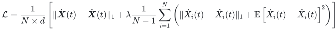 其中,N表示节点数,d表示状态维度,||·||1 为ℓ1范数。损失函数的第一部分表示平均绝对误差,第二部分则表示绝对误差的方差。参数 λ 是一个用于平衡两部分的系数。该损失函数将均值和方差结合在一起,旨在不仅最小化预测值与真实值之间的平均差异,同时控制误差的波动性。
