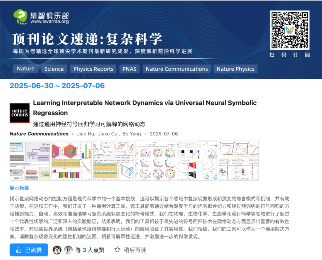 集智斑图速递板块,可轻松阅读海量复杂科学精选论文,一键获取原文PDF,也可能会有对应解读视频。
