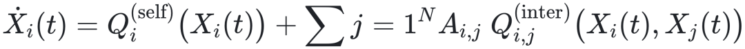 (interaction dynamics)两个耦合组件。网络动力学的控制方程可以被改写成按节点划分的形式: