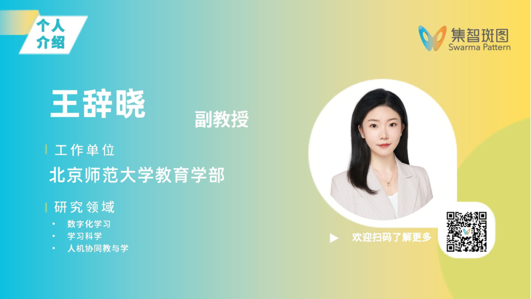王辞晓,北京师范大学教育学部副教授,“仲英青年学者”。北京师范大学理学学士,北京大学-加州大学伯克利分校联合培养博士。研究方向为数字化学习、学习科学、人机协同教与学。主持国家自然科学基金面上项目、青年项目、北京市教育科学规划重点课题、International Network of Educational Institutes (INEI) Seed Funding、北师大青年拔尖人才培育项目等课题10余项,出版专著、教材4部,在Computers & Education、Learning & Instruction、电化教育研究、中国电化教育等SSCI/CSSCI/EI检索刊物发表论文80余篇,获第四届“全国教育实证研究优秀成果奖”。
