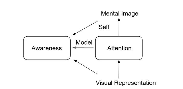 图6: 在注意图式理论中,意识作为注意力的模型图示