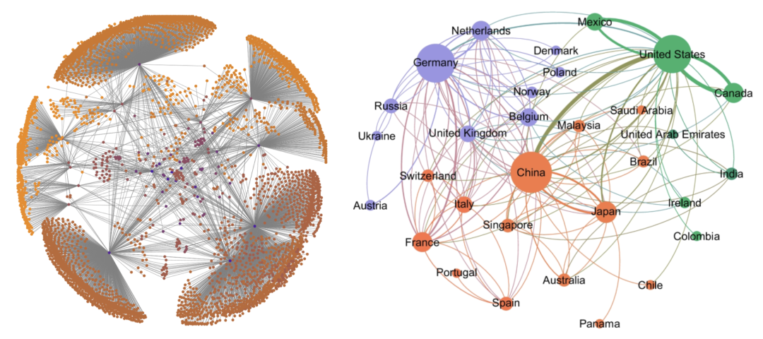 不过,上述的Banavar模型和Dreyer模型,我们其实都没有离开欧式空间讨论,流动都发生在一个实际的物理空间。如果系统的流动并没有被嵌入在欧式空间呢?如果系统的流动发生在一个网络上呢?对于互联网、企业等这类非欧系统,它们无法通过欧式几何坐标来描述,其实最好的方式是将其抽象为一个网络结构,而集体注意力流、现金流这些流动,都是发生在这个网络结构上的。实际上,这种“网络化”的抽象,在现实世界中更加普遍,可以同时描述欧式空间和非欧空间中流动。