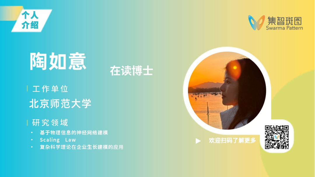 陶如意,北京师范大学系统科学学院博士在读,导师为张江教授。于2024年参与圣塔菲研究所举办的暑期夏令营。