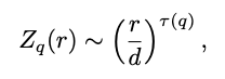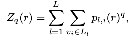表示l层中的节点i在某个半径r下的邻居数量占该节点所有邻居数量的比例。作者们发现,配分函数的大小与当前半径和最大半径的比值有着一个幂律关系,幂指数和失真因子q有关。