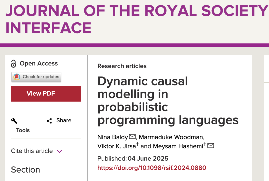 在神经科学领域,理解大脑各区域间因果关系对于揭示脑功能机制至关重要。然而,大脑网络的动态活动非常复杂,我们需要既考虑因果性又包含非线性的模型才能深入刻画脑区互作。动态因果建模(Dynamic Causal Modelling, DCM)正是用来解决这一问题的重要方法——它利用大脑生理动力学模型和贝叶斯推断,从脑成像数据(如EEG/MEG或fMRI)中估计不同脑区之间的有效连接关系[1][2][3]。近日,发表在 《皇家学会界面期刊》 的一项最新研究将概率编程语言引入DCM方法学,显著提升了模型推断的效率和准确性。研究团队开发了一套自动化的因果模型推断方案,成功应对了以往方法面临的多解不确定性等挑战,让借助脑成像数据探究神经因果机制变得更加可靠和高效。