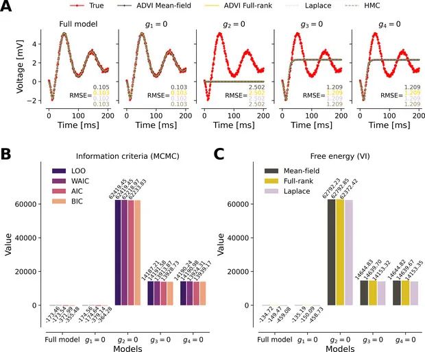 验证了不同推断方法的一致性:研究发现,只要算法足够得当,MCMC采样与变分推断最终可以趋同于同一个后验分布。在成功应用时,两类方法对模型证据的评估也高度一致(如全贝叶斯信息准则与自由能准则结果相符)。这为习惯于变分方法的研究者提供了信心:引入采样方法不会与既有结论相冲突,反而可以作为相互校验的工具。这种一致性也说明该DCM模型推断问题在得到充分计算支持时,其解的确定性更强。