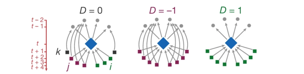 图1:D-index示例图,右图的研究(蓝点)D-index最高,意味着该研究出现后,其它的研究都需要引用该研究,成为了领域中绕不过的基石