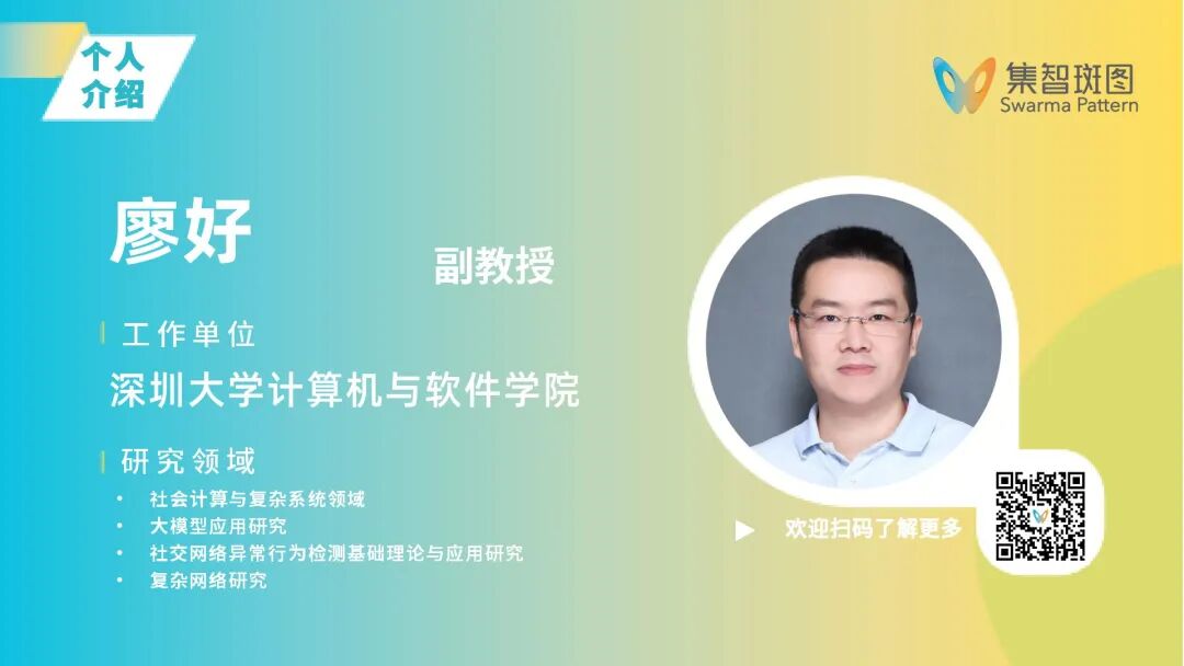 廖好,深圳大学计算机与软件学院长聘副教授,博士生导师。2015年在瑞士弗里堡大学获哲学博士学位。主要研究方向是信息挖掘与复杂系统交叉领域,信息传播和大模型等相关领域研究,先后主持了3项国家自然科学基金等多个纵向及微软亚洲研究院、腾讯、百度、平安等企业合作委托科研项目,参与了国家重点研发计划,国家自然科学基金-广东省联合基金等国家重点项目。申请和获得国家发明专利六十余项。在Physics Reports、EPL、Chaos、CNSNS、ACM Trans、IP&M等重要期刊及NeurIPS、KDD、SIGMOD、WWW、ACL、EMNLP、AAAI等权威会议上发表论文。曾获CCF-腾讯犀牛鸟卓创奖,微软亚洲研究院铸星计划学者,微软新闻集团LT-Hack Recognition Award以及深圳大学荔园优青学者。