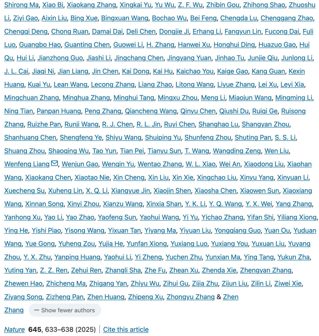 这篇文章的作者人数,竟然达到了将近200人,真可谓集体智慧之作。在这个长长的作者列表中,你能找到梁文锋的名字吗?
