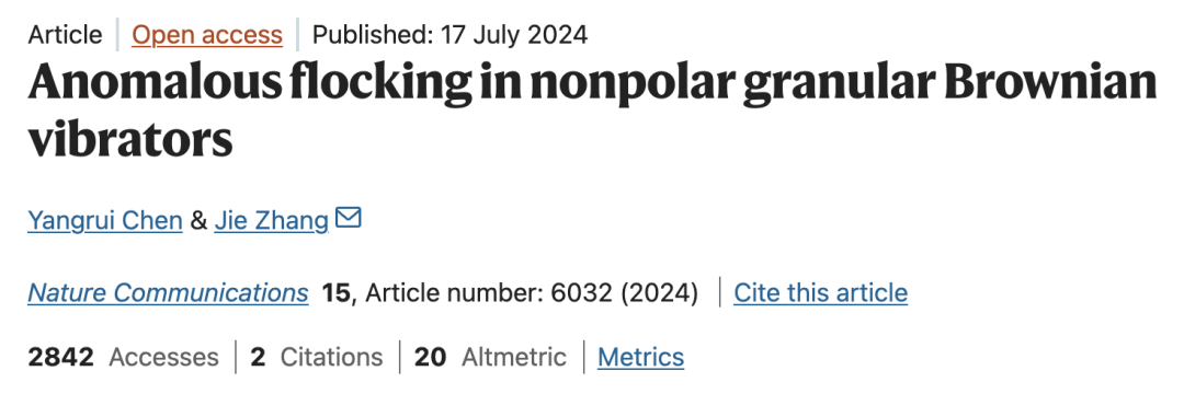 文章:Anomalous flocking in nonpolar granular Brownian vibrators