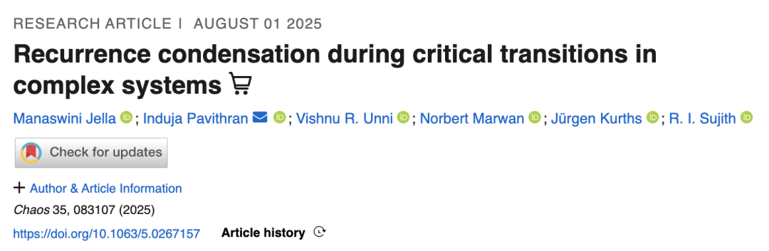 论文题目:Recurrence condensation during critical transitions in complex systems