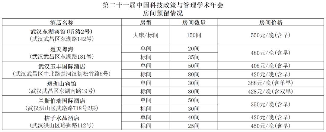 注:参会代表需通过会议网站预订住宿,享受协议价。房间数量有限,为保证您的顺利参会,请尽早预订。