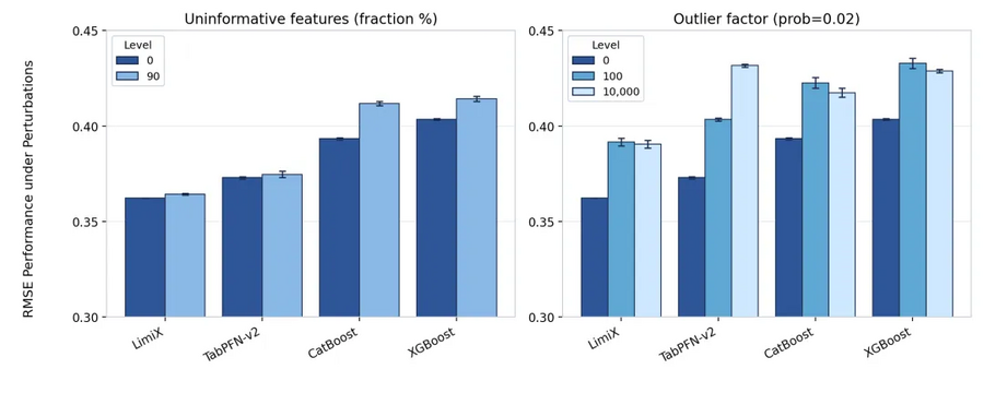 在回归任务上,“极数”大模型在R2和RMSE指标上都达到了平均最优,对比其他baseline方法展现出了明显的优势。并且在数据集中有干扰特征或无效特征时,性能优势更加明显。