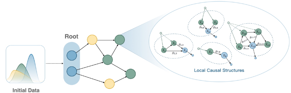 不同于传统的树模型和基于transformer架构的LLM,“极数”大模型在训练过程中完全使用生成数据,不依赖于任何真实世界的数据来源。为了使数据生成的过程高效且可控,团队使用了基于结构因果图的数据生成方式:采样到的初始数据在有向无环图上进行传播,通过复杂的边映射和节点交互来模拟现实世界中不同的因果依赖关系;通过对因果图上的生成数据进行采样,最终获得训练数据中的特征和目标。使用这种方法生成的数据,既实现了因果结构上的多样性,又保证了数据的可控性。