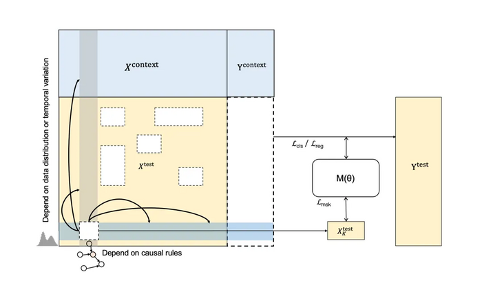 在预训练阶段,“极数”大模型基于海量因果合成数据学习数据中的因果关系,不同于专用模型在训练阶段记忆住数据特征的模式,“极数”大模型可以直接在不同的上下文信息中捕捉因果变量,并通过条件掩码建模的方式学习数据的联合分布,以适应包括分类、回归、缺失值预测、数据生成、因果推断等各种下游任务。在推理阶段,极数可直接基于提供的上下文信息进行推理,无需训练即可直接适用于各种应用场景。